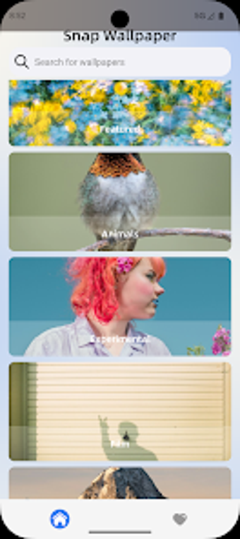 SnapWallpaper ist eine benutzerfreundliche App, die entwickelt wurde, um Nutzern bei der Suche nach passenden Wallpapers für ihre Geräte zu helfen. Die App bietet eine Vielzahl von kuratierten Kategorien wie Featured, Animals und Experimental, die es ermöglichen, das passende Hintergrundbild schnell zu finden. Nutzer können die Bilder in voller Bildschirmansicht betrachten, bevor sie sich entscheiden, welche sie speichern oder herunterladen möchten. Die intuitive Benutzeroberfläche sorgt für ein reibungsloses und angenehmes Browsing-Erlebnis.